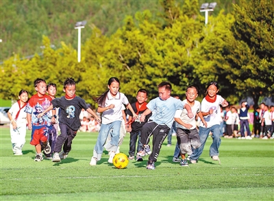 10月16日,貴州省黔東南苗族侗族自治州從江縣剛邊壯族鄉(xiāng)中心小學(xué)學(xué)生在進(jìn)行班級(jí)足球比賽。近年來(lái),該小學(xué)通過(guò)成立校園足球社團(tuán)、舉辦校園足球聯(lián)賽等方式,讓孩子們?cè)谧闱蜻\(yùn)動(dòng)中享受樂(lè)趣、增強(qiáng)體質(zhì)、健康成長(zhǎng)。