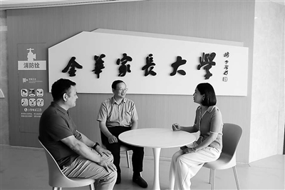 家庭教育專家吳惠強教授(中)在接受金華市中小學家長咨詢。饒旭華 攝