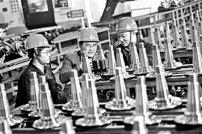 湖北文理學院教授吳華偉(中)在湖北三環(huán)鍛造有限公司指導生產。學校供圖