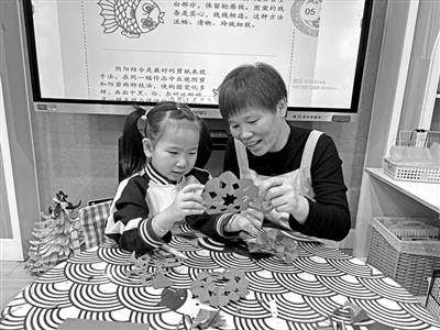 ②保育員教幼兒剪紙。錢(qián)豪瓊 供圖