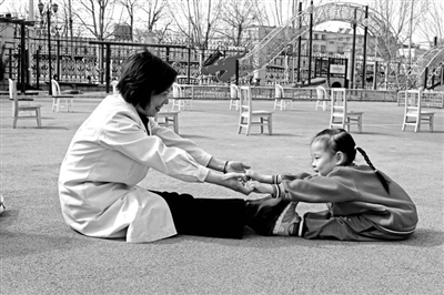 ⑤保健醫(yī)生帶幼兒做運(yùn)動(dòng)。趙杰 攝