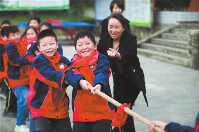 近日,貴州省黔西市谷里鎮(zhèn)龍井小學學生在參加拔河比賽。周訓超 攝