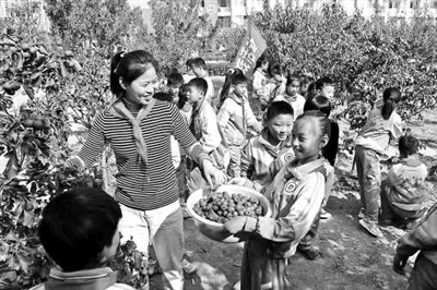 ②學(xué)生們?cè)趹敉膺M(jìn)行瓜果采摘。 菏澤市牡丹區(qū)第二實(shí)驗(yàn)小學(xué)供圖