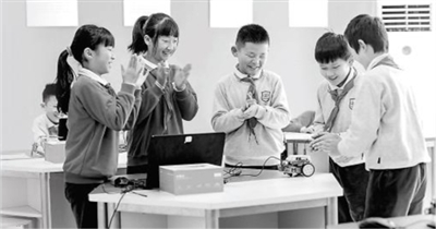 芙蓉區(qū)育英西垅小學(xué)編程社團的學(xué)生們通過編程讓機器人動起來。 學(xué)校供圖