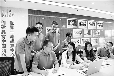 國家超級計算廣州中心主任、中山大學(xué)計算機學(xué)院教授盧宇彤(前排右三)與同事交流。 學(xué)校供圖