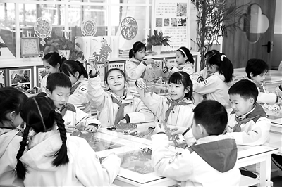 浙江省杭州采荷第一小學教育集團新城實小學生在進行剪紙創(chuàng)作。
