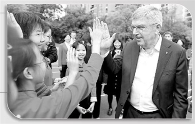 國(guó)際奧委會(huì)終身名譽(yù)主席巴赫在張槎中心小學(xué)與學(xué)生互動(dòng)。柱子 攝