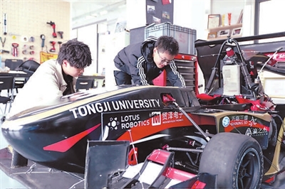 周末的上午,同樣位于嘉定校區(qū)的同濟(jì)大學(xué)大學(xué)生汽車科技創(chuàng)新實(shí)踐基地,“翼馳”車隊(duì)隊(duì)長(zhǎng)、汽車學(xué)院大四學(xué)生蔡昱頡和隊(duì)員正為一輛燃油方程式賽車調(diào)試電機(jī)。這個(gè)基地是同濟(jì)大學(xué)一眾冠軍車隊(duì)的搖籃——過去10年,車隊(duì)在國(guó)內(nèi)外大學(xué)生方程式賽事中斬獲37項(xiàng)大獎(jiǎng),車隊(duì)中先后走出9家科技企業(yè)。