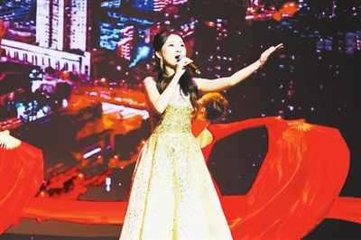 大學(xué)生在舞臺(tái)上演唱原創(chuàng)歌曲。