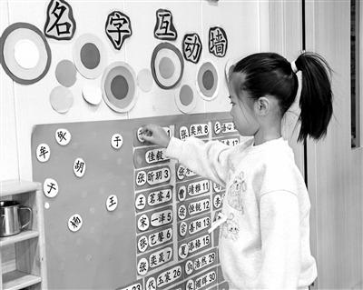 幼兒拼貼自己或同伴的姓名。石夢瑤 供圖