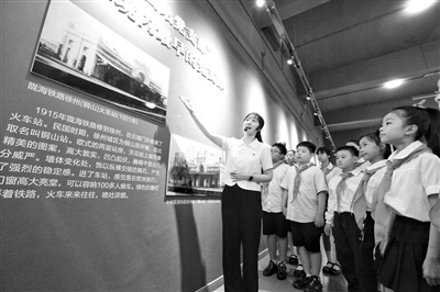 江蘇省徐州市民主實(shí)驗(yàn)學(xué)校學(xué)生在“八號門事件”舊址,參觀江蘇第一個黨支部史料展,學(xué)習(xí)黨史知識。蒯創(chuàng) 攝