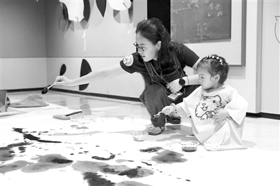 幼兒和家長在美術(shù)館進行水墨畫創(chuàng)作。 林嵐 供圖