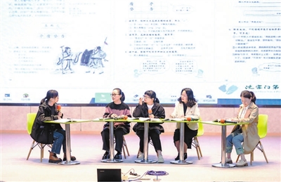 普陀區(qū)東港中學師生在科學課上討論“創(chuàng)意板凳”設計方案。 學校供圖