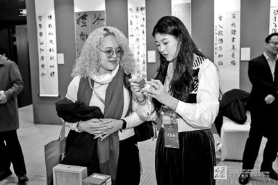 在2025世界中文大會(huì)上,中外學(xué)生交流中國(guó)傳統(tǒng)篆刻藝術(shù)。