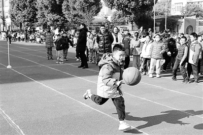 近日,江蘇省無錫市揚名中心小學冬季趣味運動會上,學生在參加運球比賽。湯毅 攝