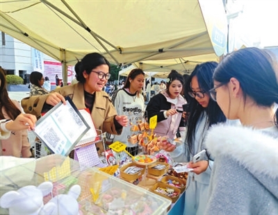 走在創(chuàng)業(yè)街區(qū),日用品、美食、手作、3D打印潮玩等貨品琳瑯滿目,叫賣(mài)聲、歡笑聲、討價(jià)還價(jià)聲此起彼伏?!拔覀兦捌谧隽耸袌?chǎng)調(diào)研,發(fā)現(xiàn)身邊的同齡人都比較喜歡飾品和玩偶,同時(shí)結(jié)合隨機(jī)抽選機(jī)制滿足消費(fèi)者追求新奇體驗(yàn)的心理,推出了這個(gè)‘盲刮’項(xiàng)目,銷(xiāo)售勢(shì)頭很不錯(cuò)?!闭憬ど搪氃河耙晫I(yè)學(xué)生庹晶晶很高興,在她和眾多“出攤”的學(xué)生團(tuán)隊(duì)看來(lái),參與商品展銷(xiāo)會(huì),能夠親身體驗(yàn)從商品選型、采購(gòu)、定價(jià)到銷(xiāo)售策略的市場(chǎng)運(yùn)作全過(guò)程。