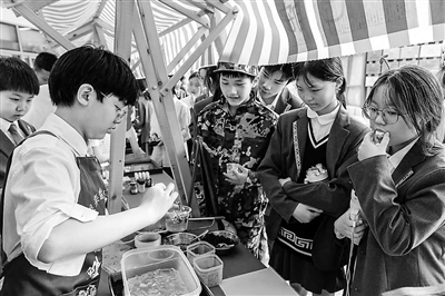 學(xué)校定期舉行美食節(jié)活動(dòng),圖為學(xué)生們在分享自制美食。 學(xué)校供圖
