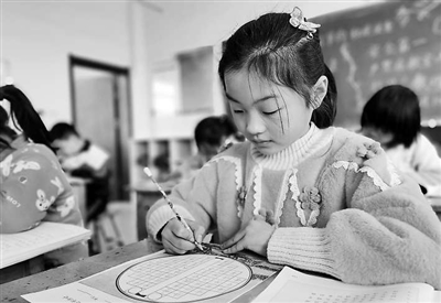 1月12日,在山東省淄博市高青縣唐坊學(xué)區(qū)和店小學(xué),二年級(jí)學(xué)生在參加硬筆寫字比賽。孫傳波 攝