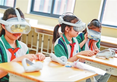 在上海市宋校嘉定實(shí)驗(yàn)學(xué)??萍脊?jié)的“科普游園”活動中,學(xué)生正在參加“3D虛擬視界”項(xiàng)目。學(xué)校供圖