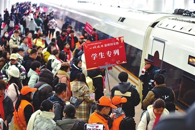 近日,乘坐團(tuán)體包車的大學(xué)生在安徽阜陽西站站臺(tái)準(zhǔn)備乘車。盧啟建 攝